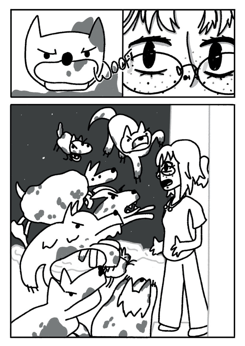Mnie, dziadersowi, najbardziej przypadła do gustu Kąpiel Kostka Elżbiety Wojciukiewicz. O psie samej Śmierci, który jest przerażony do szpiku kości przed czekającą go kąpielą. Jest puenta i to całkiem zabawna, a sam short jest zwyczajnie uroczy. Łukasz Piotrkowicz zrobił z kolei gorzką w wymowie rzecz, dlaczego niektóry psy są czyścioszkami. Gorzką, gdyż w zawoalowany sposób mówi o nas, ludziach. Równie wymowny komiks zrobił Piotr Marzec. Choć trudny w interpretacji. Być może pozytywny w wymowie, ale równie dobrze może mieć o wiele bardziej mroczny wydźwięk. Ale na pewno niepokojący. Lubię Mar Bogdanis i bekową historię opartą na jednym slapsticku, który wyzwala się na ostatnim kadrze. Cała reszta to przygotowywanie pod niego gruntu. A sama puenta tak głupia, że... aż fajna! Z podobnie absurdalnego chwytu korzysta Alisunki - zakończenie to typowy facepalm, ale nie sposób się nie uśmiechnąć dochodząc do absurdalnego zakończenia. Piotr Czarnecki i Werka Dobro z kolei stworzyli psychologiczny thriller. Psi thriller, trzeba zaznaczyć. Szacun za pomysł. Chwalę również pracę Gohmana za... burtonowski klimat.